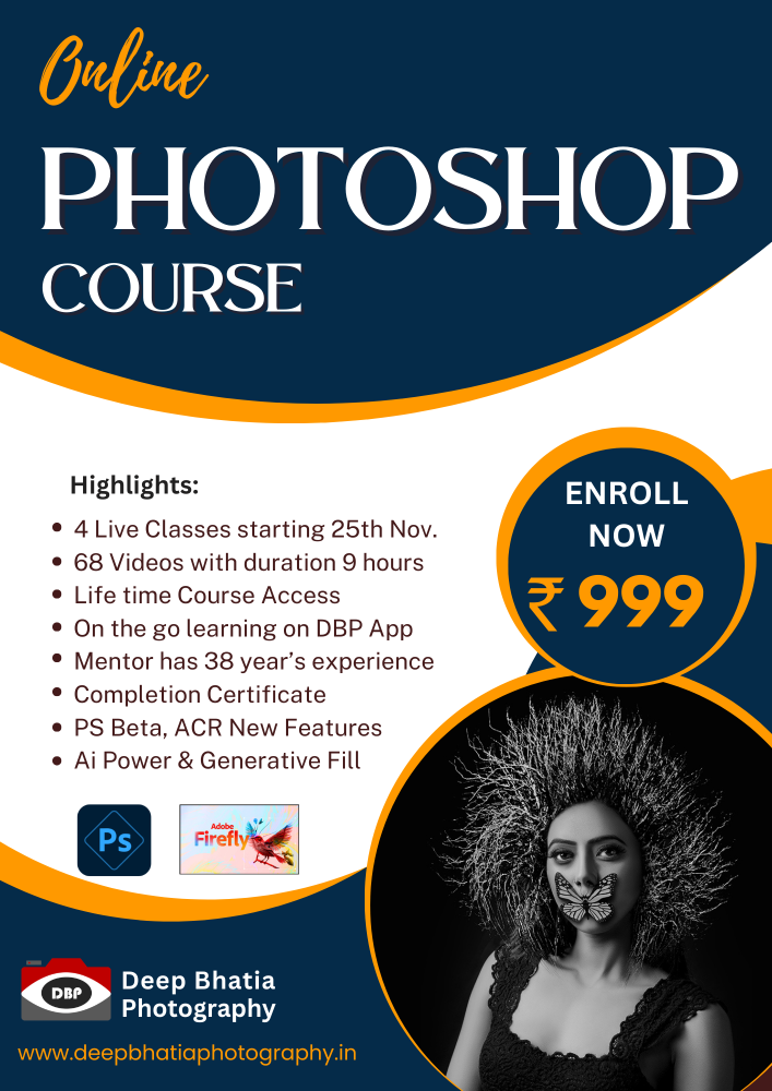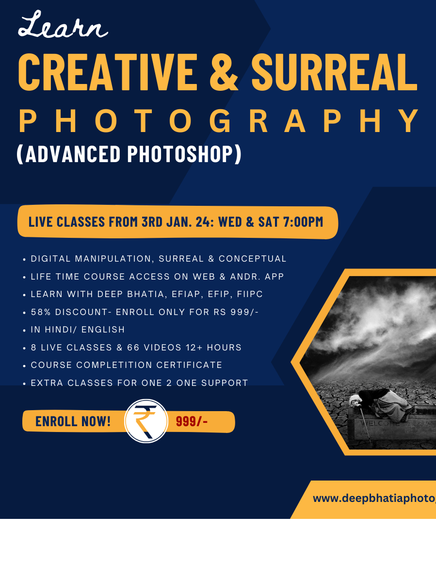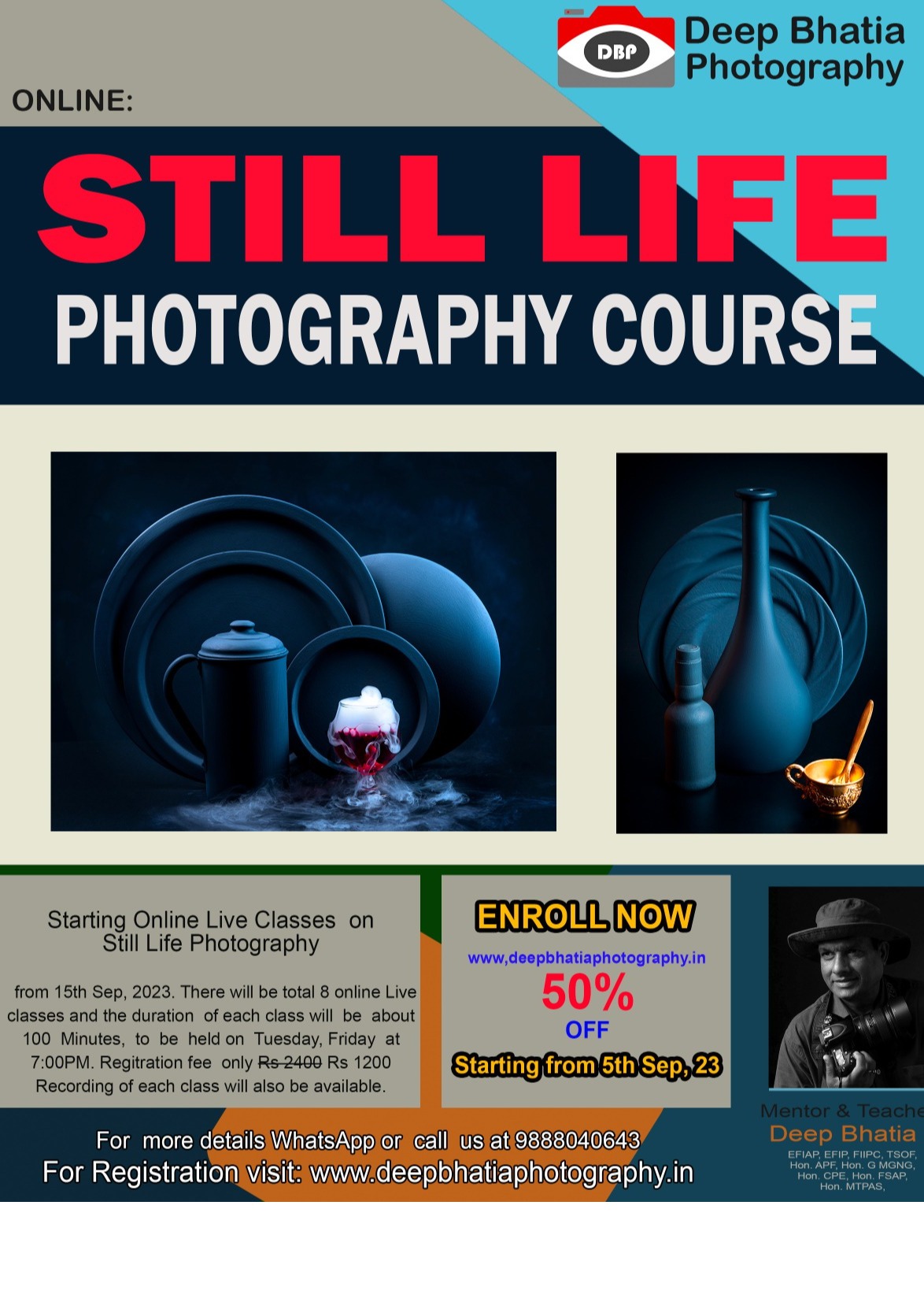 Instructor: Deep Bhatia, MFIP, EFIAP, Hon. GMGNG, Hon. MTPAS, Hon. MSAP, FIIPCLanguage: Hindi, English
